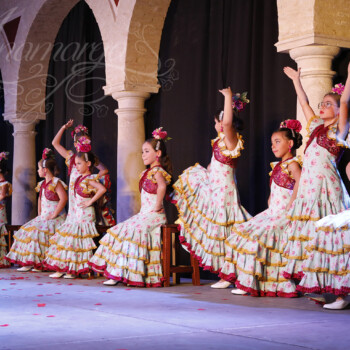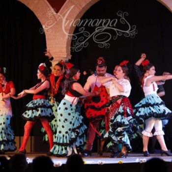Por otra parte la Escuela colabora con entidades de distinto tipo (ayuntamientos, asociaciones sin ánimo de lucro) en fiestas locales o eventos solidarios, de esta manera el alumnado puede bailar en público y contribuir a la difusión del flamenco y de los valores del arte en general. Una de las últimas colaboraciones de la escuela ha consistido en aportar coreografías a dos espectáculos de copla, una en el teatro Garnelo de Montilla y otra gala en Castro del Río organizada por Anamarga.